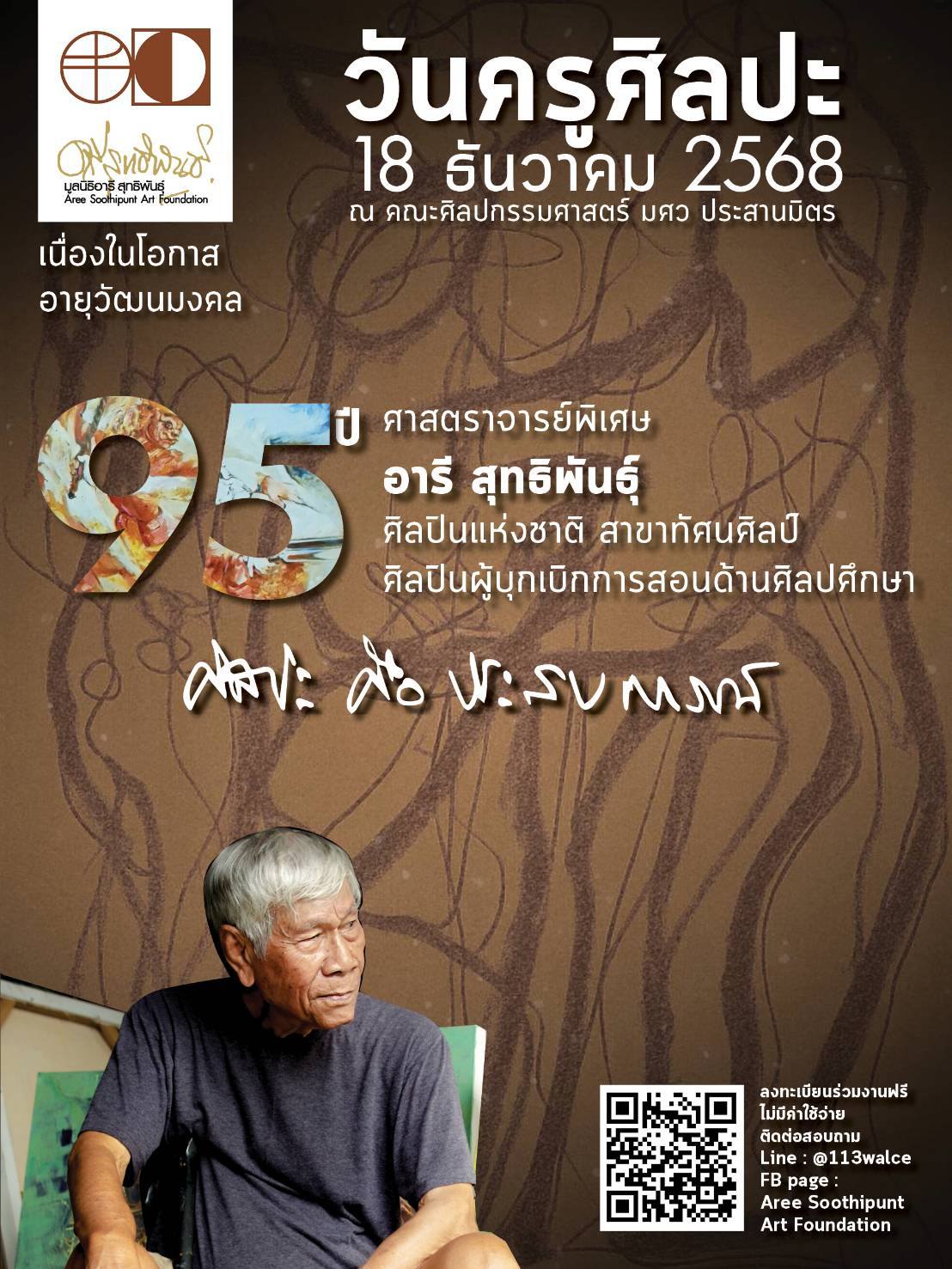 ขอเชิญ นิสิต, ศิษย์เก่า และบุคลากรคณะศิลปกรรมศาสตร์ ร่วมงานวันครูศิลปะ 95 ปี ศาสตรจารย์พิเศษ อารี สุทธิพันธุ์ วันที่ 15 ธันวาคม 2568 ณ คณะศิลปกรรมศาสตร์ มศว