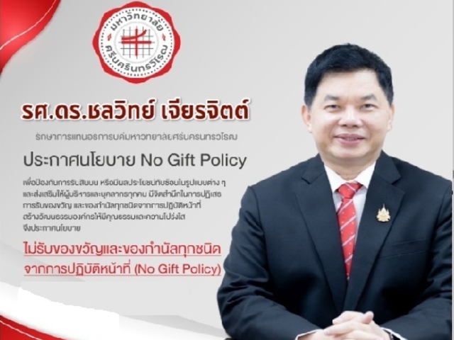 ประกาศมหาวิทยาลัยศรีนครินทรวิโรฒ เรื่อง นโยบายไม่รับของขวัญและของกำนัลทุกชนิดจากการปฏิบัติหน้าที่ ประจำปีงบประมาณ พ.ศ. 2569