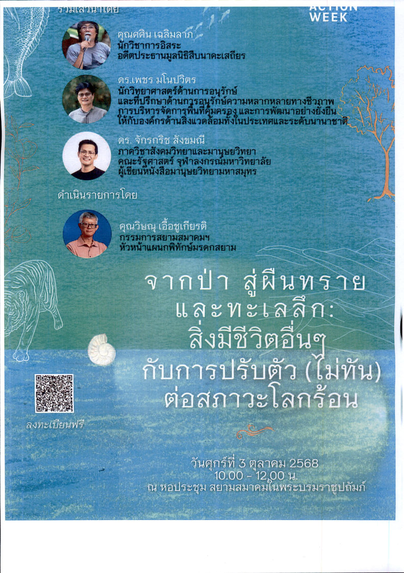 Home/ข่าว/ข่าวประชาสัมพันธ์/ขอเชิญผู้สนใจเข้าร่วมกิจกรรมงานเสวนา งานแสดงนิทรรศการศิลปะ และคอนเสิร์ต ในงาน Bangkok Climate Action Week (BKKCAW2025) วันที่ 28 ก.ย.68 – 4 ต.ค. 68 ณ หอประชุม สยามสมาคมในพระบรมราชูปถัมภ์