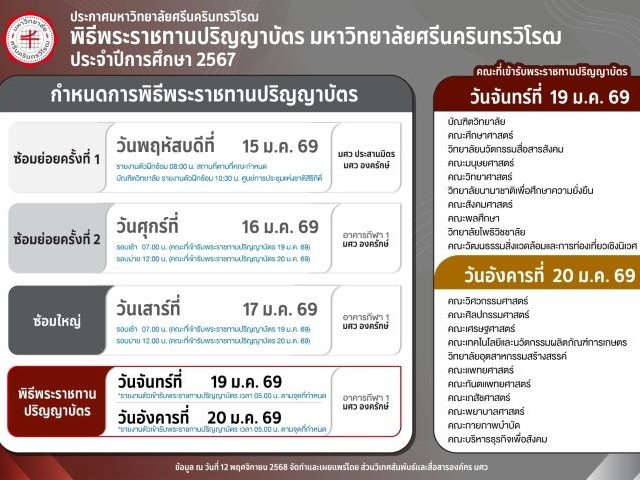 fofaswu editor 2025-11-21T17:39:00+00:00กำหนดการฝึกซ้อม พิธีพระราชทานปริญญาบัตรแก่ผู้สำเร็จการศึกษา ประจำปีการศึกษา 2567 ข้อมูลเผยแพร่ ณ วันที่ 20 พฤศจิกายน 2568 โดย ส่วนวิเทศสัมพันธ์และสื่อสารองค์กร มศว Rehearsal Schedule for the Commencement Ceremony for Academic Year 2024 Information released on November 20, 2025 By the International Relations and Communications Office, SWU #ทีมมศว #swugrad #swugrad67
