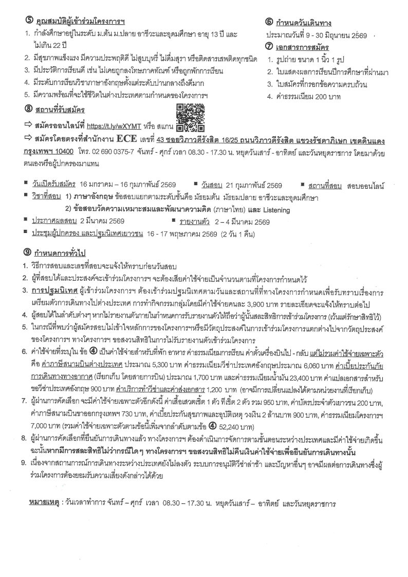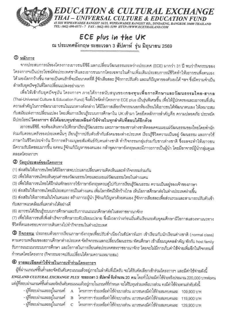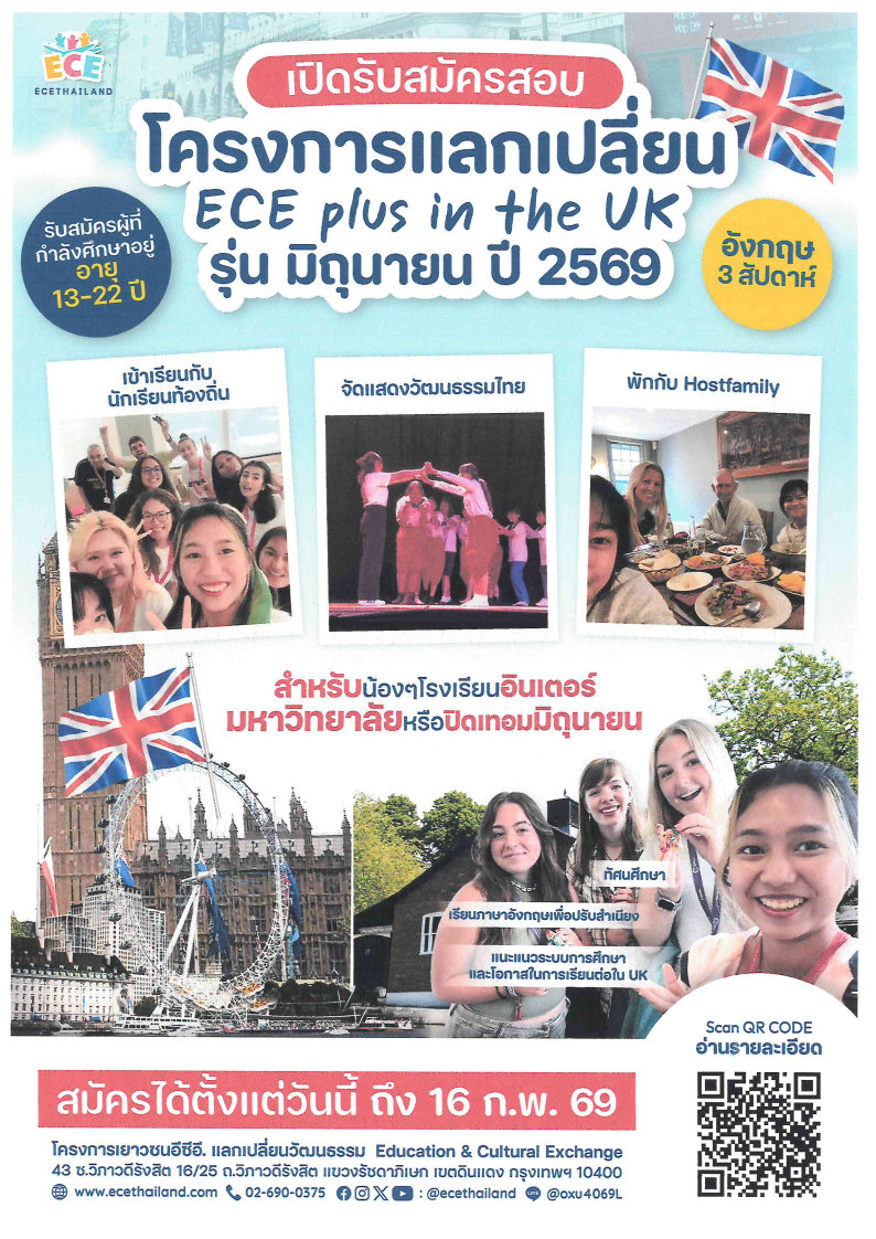 ขอเชิญนิสิตที่สนใจเข้าร่วมโครงการ ECE plus in the UK
