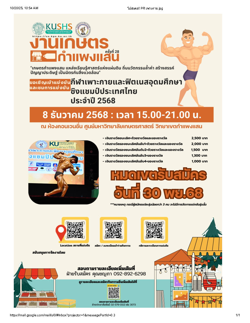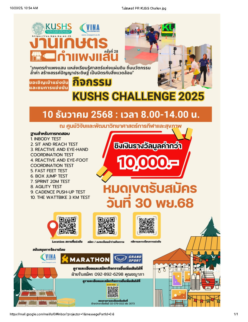 ณ คณะวิทยาศาสตร์ การกีฬาและสุขภาพ มหาวิทยาลัยเกษตรศาสตร์ วิทยาเขต กำแพงแสน