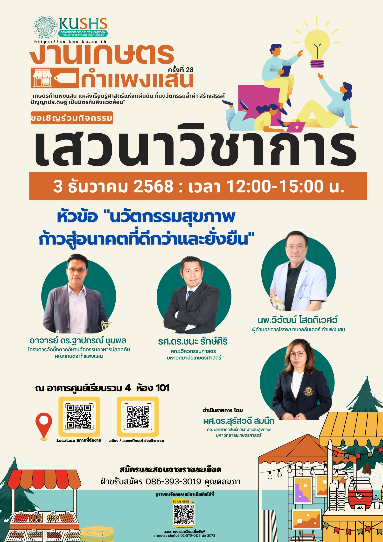 ท่านสามารถลงทะเบียน, ดูสถานที่จัดงาน และ ดูรายละเอียดเพิ่มเติมจาก QR-CODE ในโปรเตอร์ ในเอกสารด้านล่างนี้