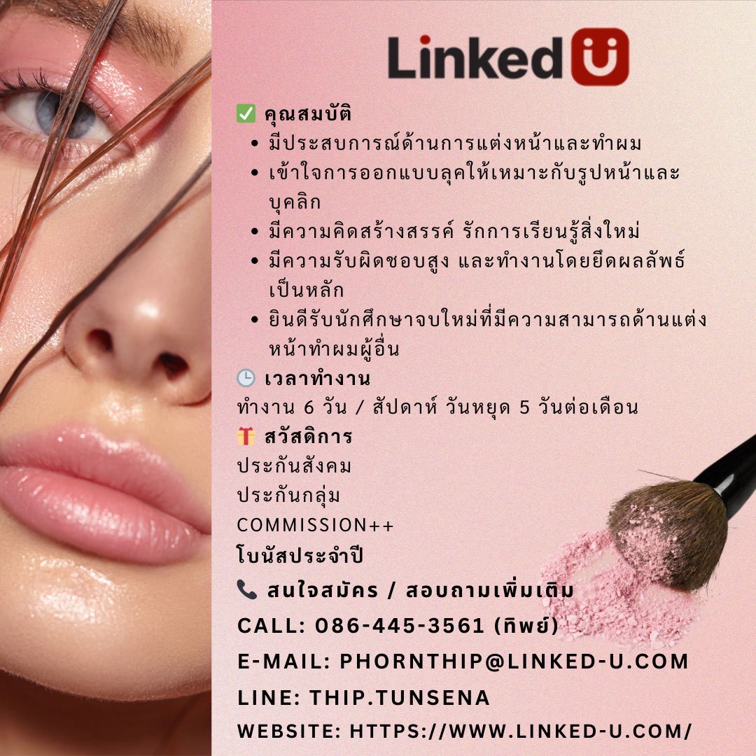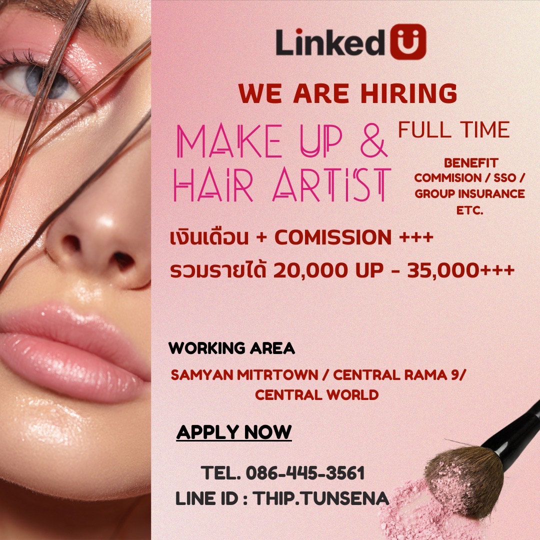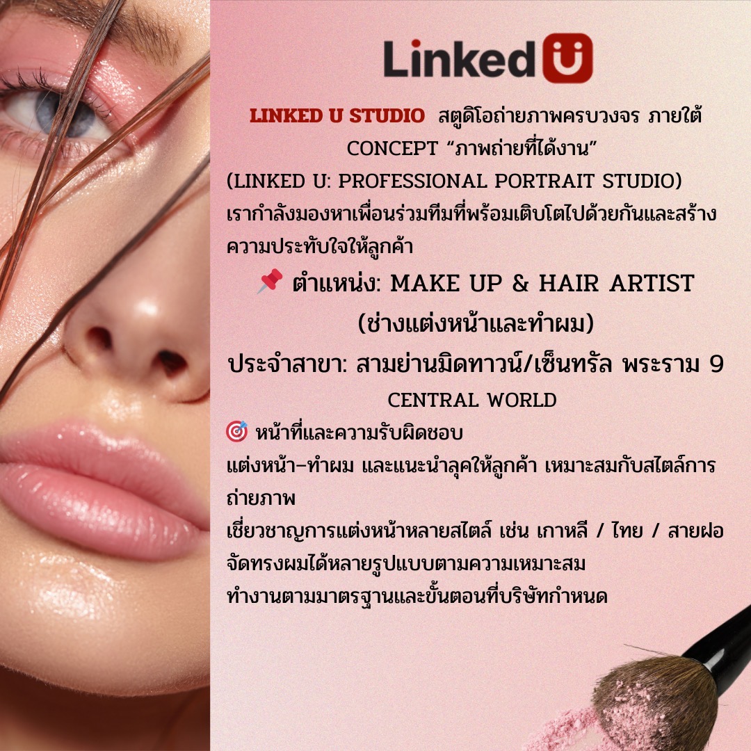 ประชาสัมพันธ์ LINKED U STUDIO เปิดรับสมัครงานตำแหน่ง MAKE UP & HAIR ARTIST ประจำสาขามิดทาวน์/เซ็นทรัล พระราม 9