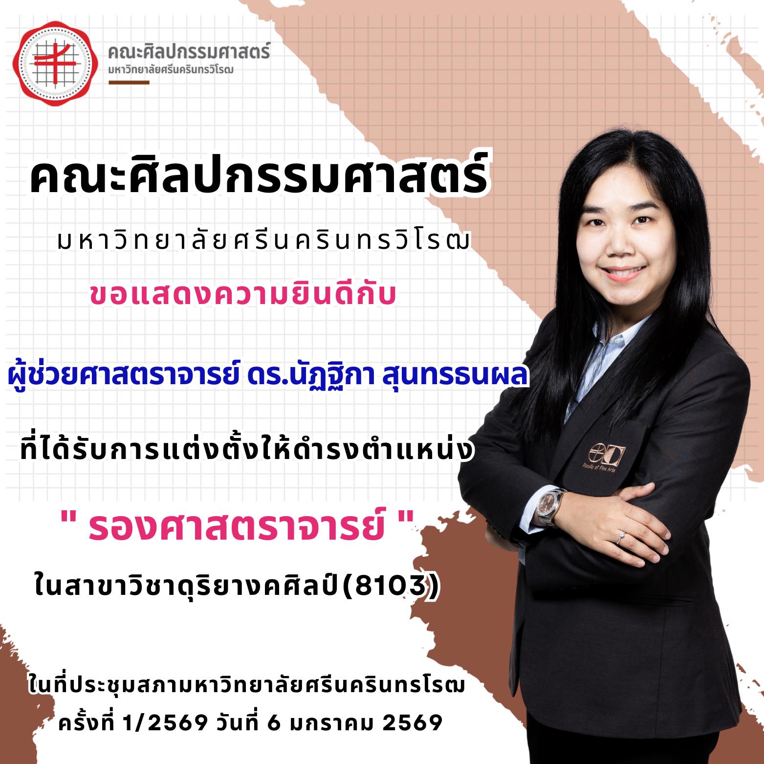 ตำแหน่งรองศาสตราจารย์ ลำดับที่ 1/2569 ของคณะศิลปกรรมศาสตร์