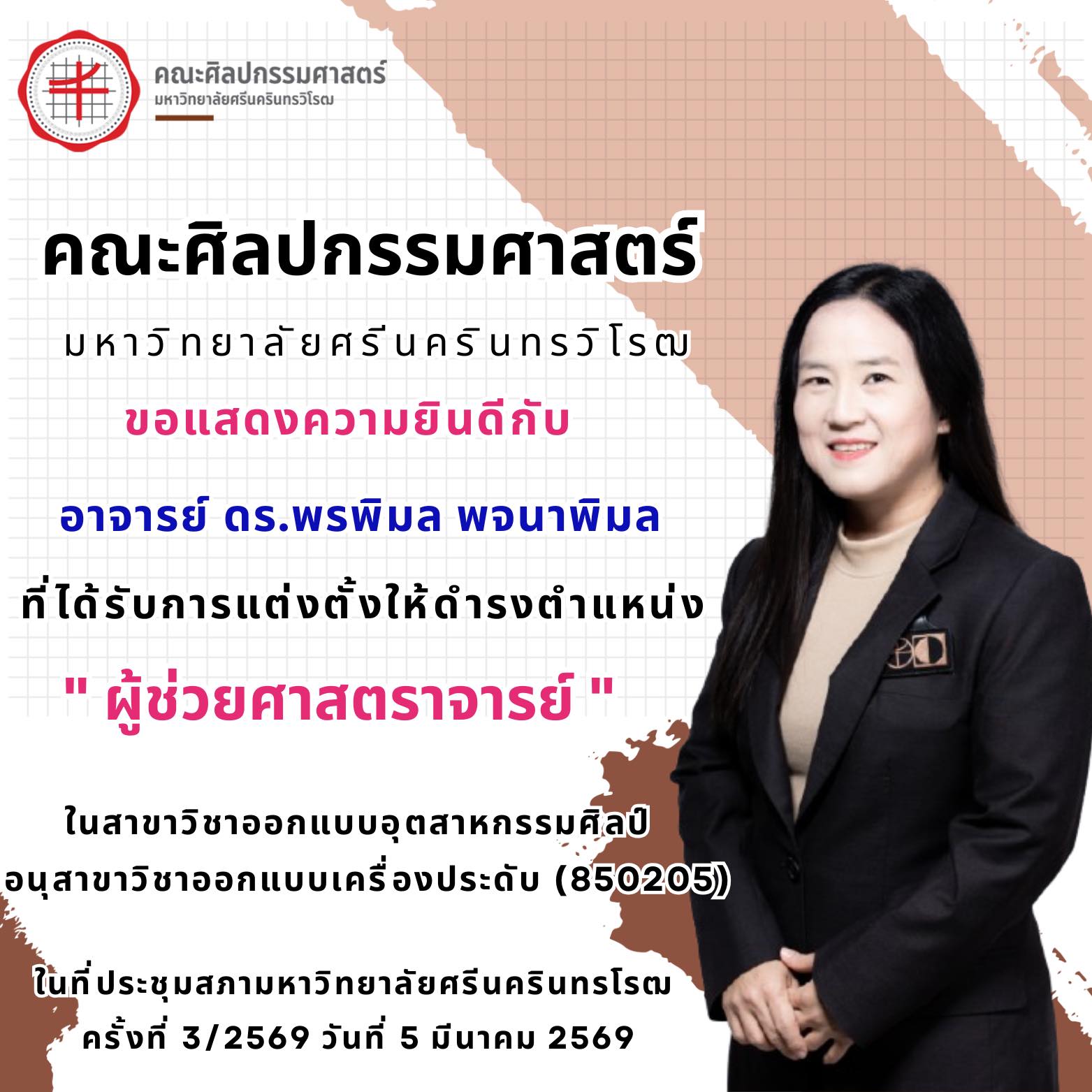 คณะศิลปกรรมศาสตร์ ขอแสดงความยินดีกับ อาจารย์ ดร.พรพิมล พจนาพิมล ภาควิชาการออกแบบทัศนศิลป์