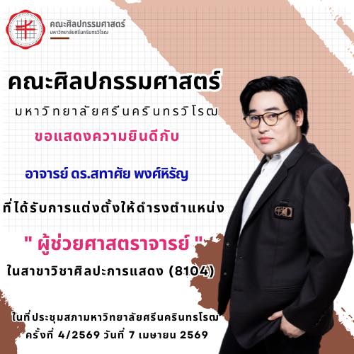 คณะศิลปกรรมศาสตร์ ขอแสดงความยินดีกับ อาจารย์ ดร.สทาศัย พงศ์หิรัญ ภาควิชาศิลปะการแสดง